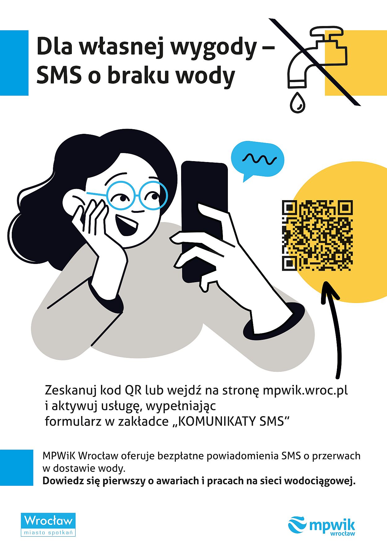 Dla własnej wygody – SMS o braku wody Z myślą o komforcie i bezpieczeństwie mieszkańców Wrocławia MPWiK wprowadziło usługę „Komunikaty SMS”. Usługa jest szybka, prosta w obsłudze i całkowicie bezpłatna. Dzięki niej mieszkańcy Wrocławia mogą uniknąć niespodzianek i zaplanować dzień bez stresu. Co ważne, usługa jest spersonalizowana — mieszkańcy dostaną powiadomienia SMS o braku wody tylko dla wskazanych przez nich adresów.