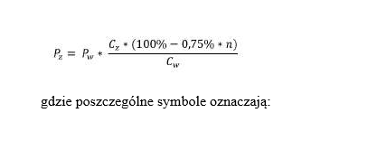 Dla umów zawartych od dnia 12 sierpnia 2017 r., kwotę zwracanej partycypacji oblicza się według wzoru: