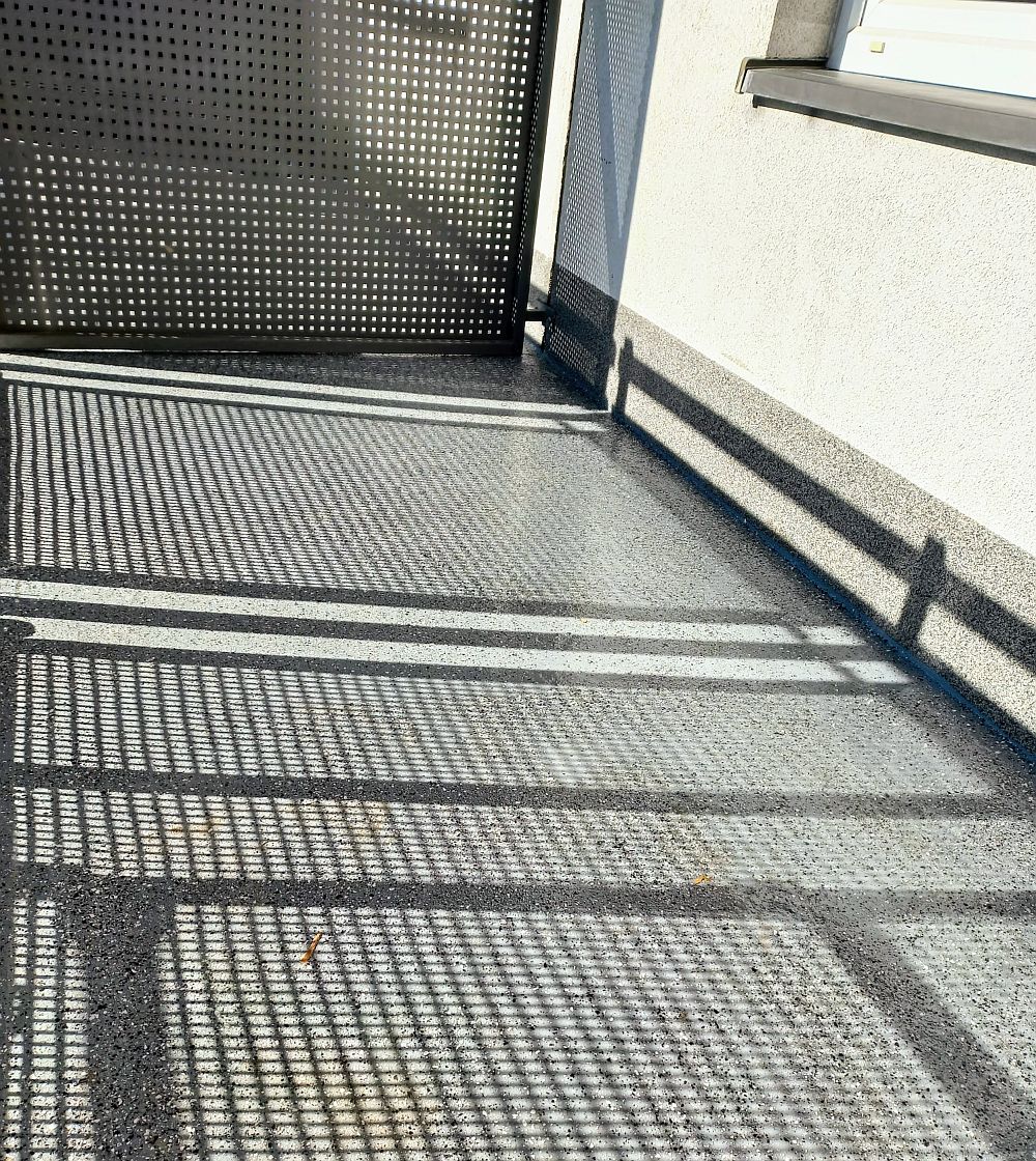 - wyłożyliśmy nową nawierzchnię balkonów, z materiału żywicznego, który ma właściwości przeciwpoślizgowe (nakładane warstwy: warstwa gruntująca, dwukrotnie warstwa zasadnicza, warstwa dekoracyjna/antypoślizgowa oraz warstwa zamykająca),